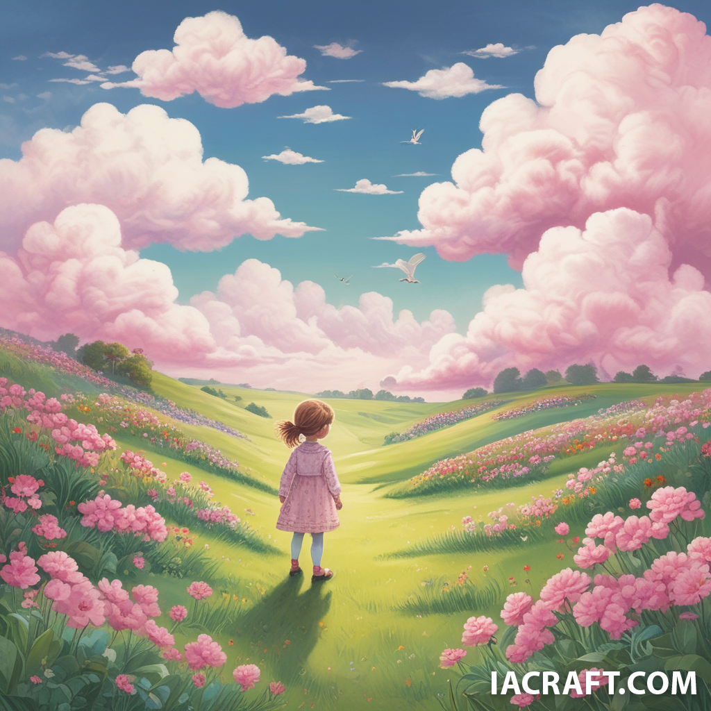 prompt: Une petite fille qui court dans un champs de coquelicot. Style manga