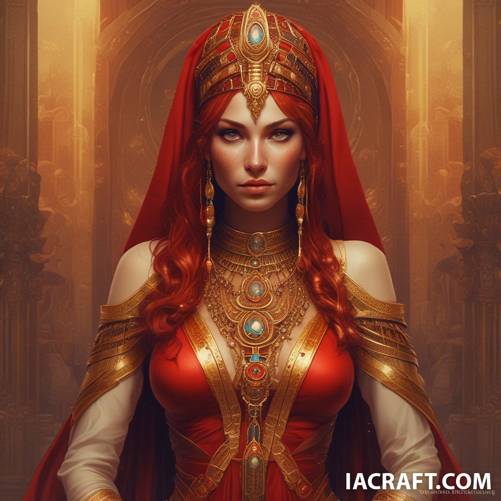 prompt: Reine du feu dans une tenue intime noble et sacrée, style égypto-fantasy. Neftou, femme splendide au...