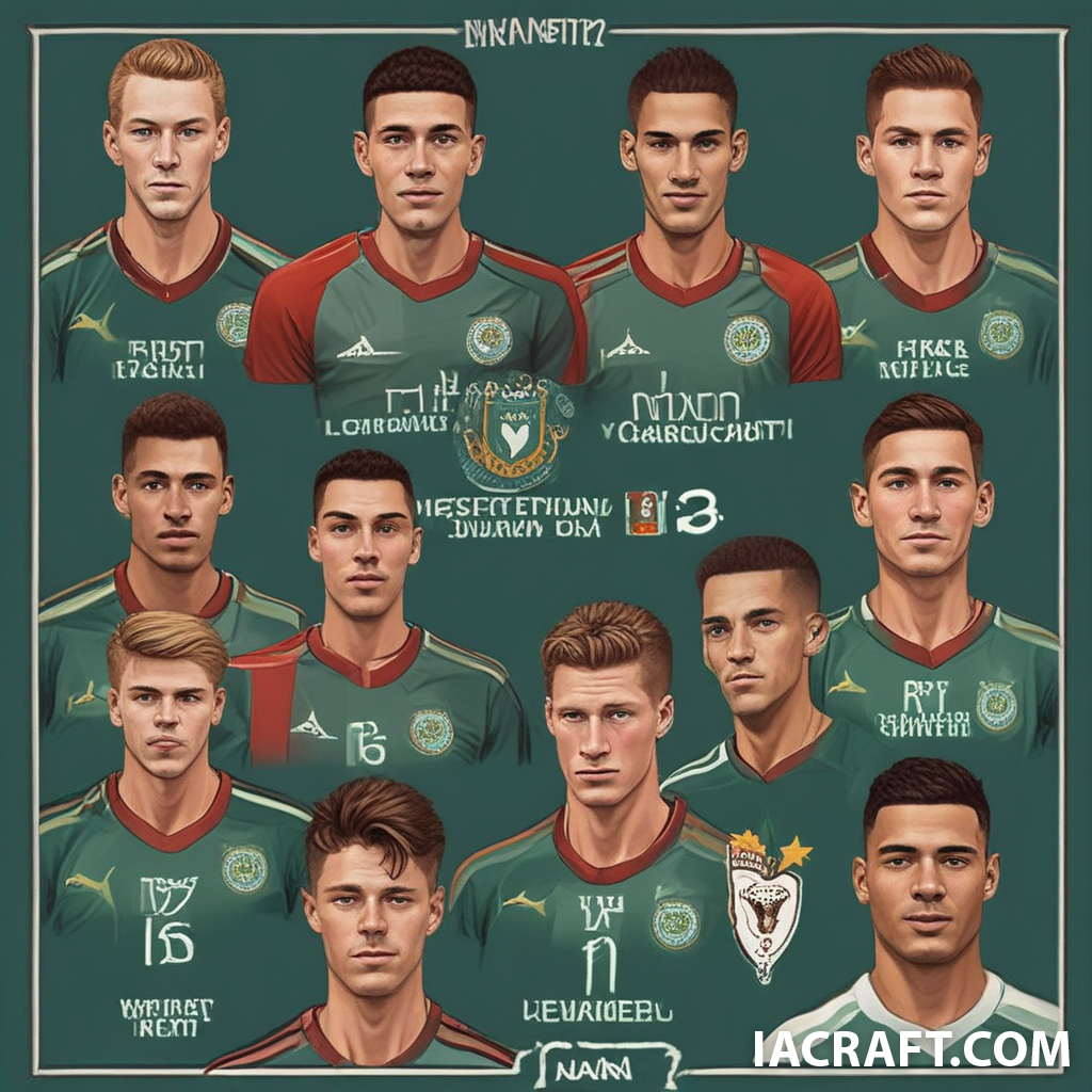 prompt: Fait moi le 11 de départ écrit comme ça : the 11 starters for match day ( écrit en petit ) et le 11...